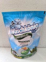 Limitovaná verze inovativních kapslí Der Waschkönig Universal TAHITI je vhodná pro barevné i bílé tkaniny. Díky třem komorám se speciálním složením enzymů jedna kapsle důkladně odstraní všechny druhy skvrn a nečistot. Organický a veganský produkt. Vyznačuje se intenzivní vůní tropického ovoce. Navíc ve velkém balení 50 kapslí.